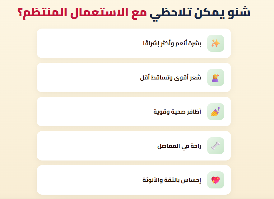 المنتج ممتاز، خفيف على المعدة ونتائجه باينة. حتى المفاصل ديالي تحسنو بزاف. الله يبارك فيكم!